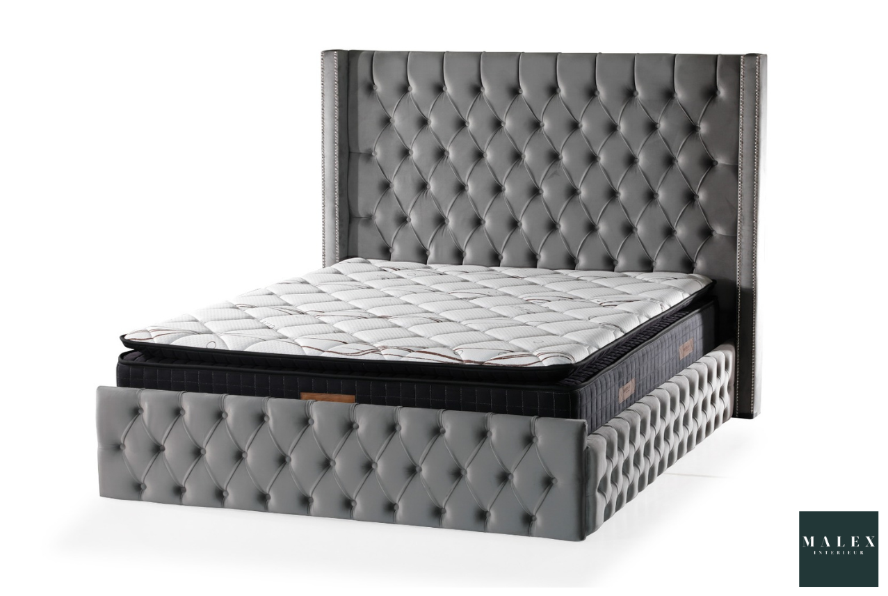 Ce somptueux cadre de lit bianca s’harmonisera facilement à votre chambre à coucher avec sa tête de lit vêtu d’un tissu velours, il s’intégra parfaitement à votre décoration.