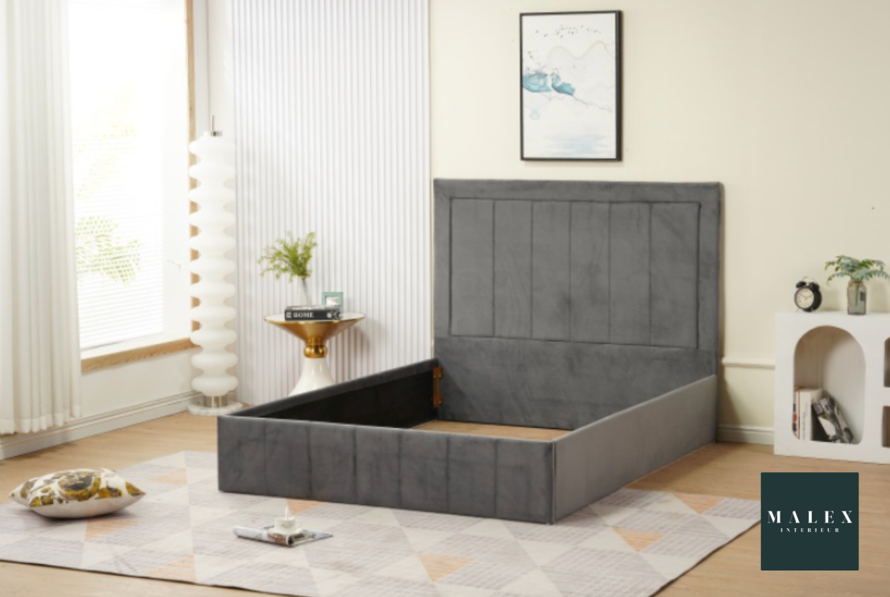 Ce somptueux cadre de lit Polo s’harmonisera facilement à votre chambre à coucher avec sa tête de lit vêtu d’un tissu velours, il s’intégra parfaitement à votre décoration.