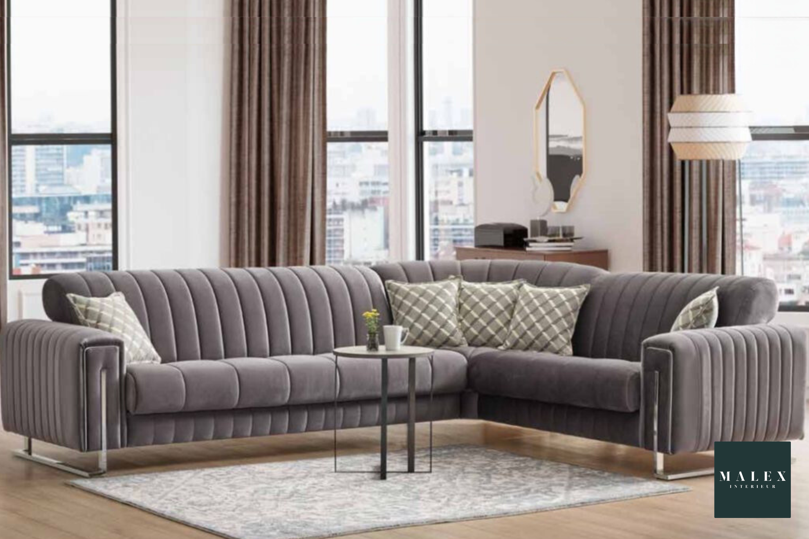 Transformez votre salon en un espace de luxe et de confort avec notre élégant canapé d’angle en velours.