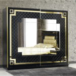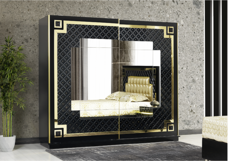 Elle est composée d’un lit, de deux chevets, d’une armoire et d’une commode avec miroir.