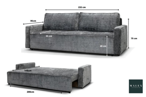 Dimensions : Lit : 180 x 60 x 205 cm / Couchage : 160 x 200cm Armoire : 180 x 60 x 205 cm Commode : 95 x 44 x 80 cm / Miroir : 70 x 2 x 80 cm Chevet : 53 x 44 x 50 cm