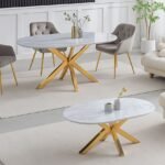 Créez une ambiance chaleureuse et cohérente dans votre salon et votre salle à manger avec cet ensemble assorti. Composé d’une table à manger spacieuse et d’une table basse design, ce duo allie style, confort et praticité.