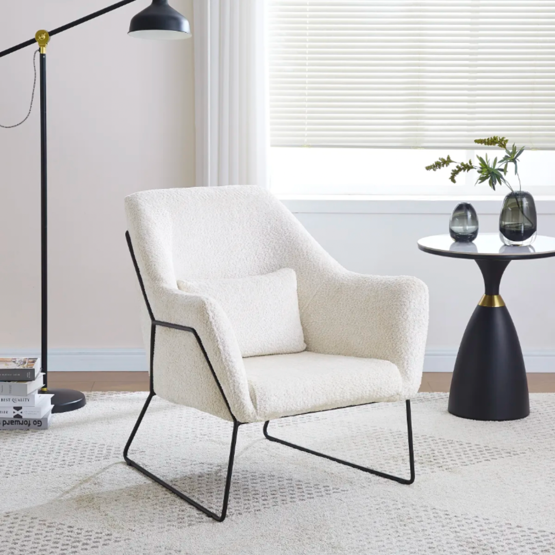 Craquez pour le sublime fauteuil Baska en laine beige.