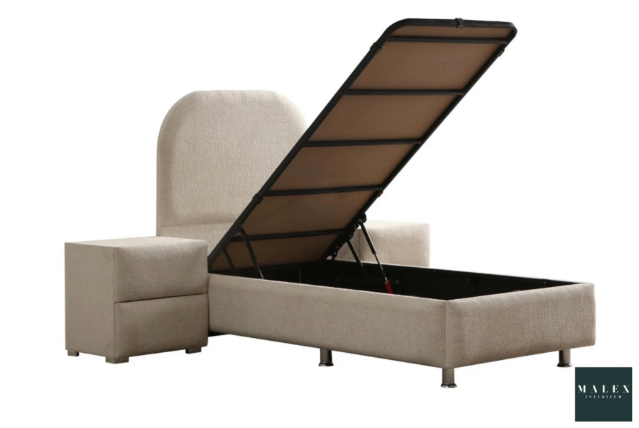 Le lit clou est composé d’un double coffre qui vous permettra de ranger vos couettes, draps, coussins et plaids.