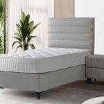 Ce somptueux lit coffre clou s’harmonisera facilement à votre chambre à coucher avec sa tête de lit vêtu d’un tissu velours, il s’intégra parfaitement à votre décoration.