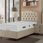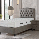 Ce somptueux lit coffre clou s’harmonisera facilement à votre chambre à coucher avec sa tête de lit vêtu d’un tissu velours, il s’intégra parfaitement à votre décoration.