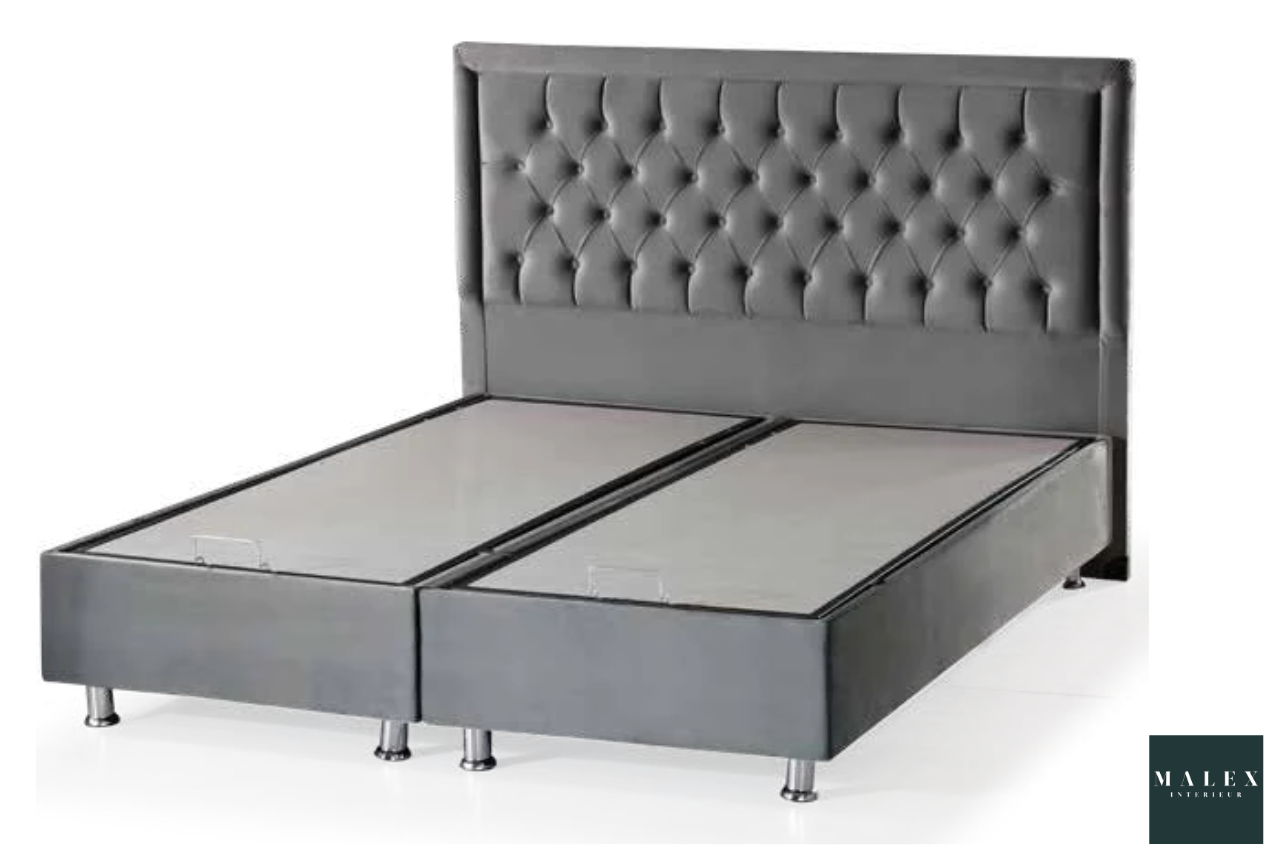 Ce somptueux lit coffre Roma s’harmonisera facilement à votre chambre à coucher avec sa tête de lit vêtu d’un tissu velours, il s’intégra parfaitement à votre décoration.