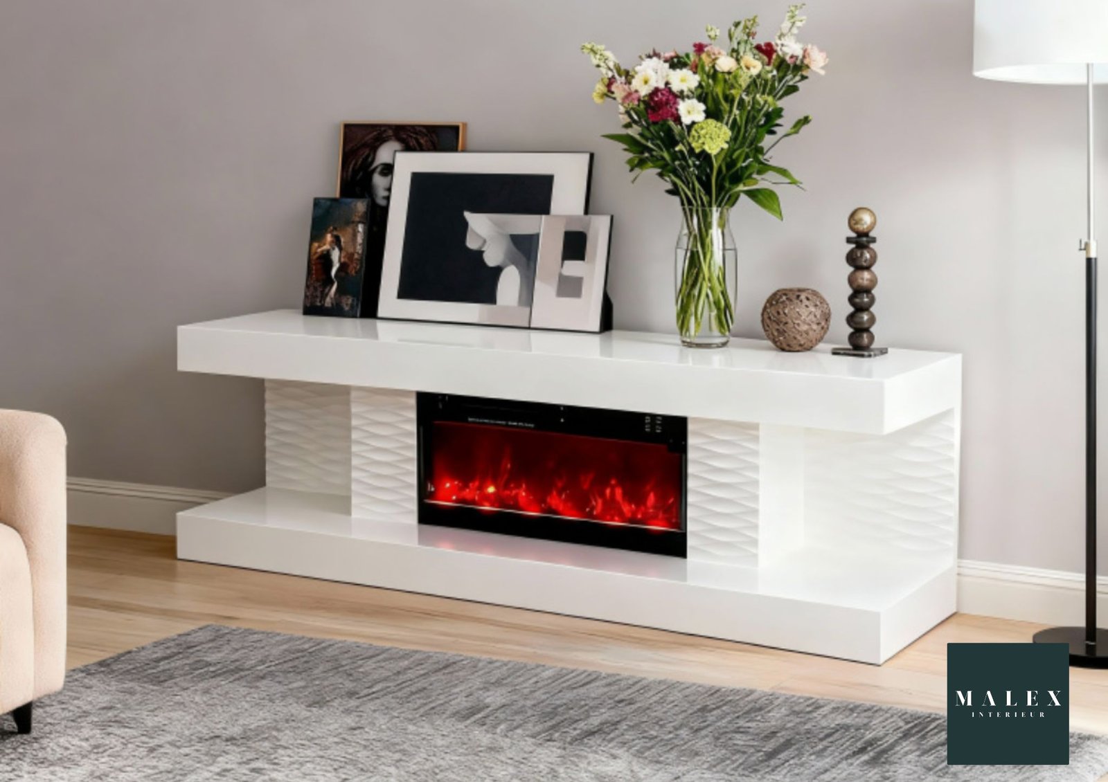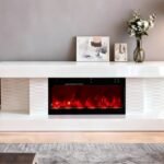 Alliez design moderne et confort avec ce meuble TV cheminée élégant et fonctionnel. Sa cheminée intégrée à effet flammes crée une ambiance chaleureuse, idéale pour sublimer votre salon. Doté de rangements pratiques, il accueille facilement vos équipements multimédias tout en conservant un style épuré.