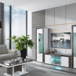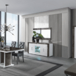 Découvrez notre séjour Mascara, composé d’un meuble TV, de deux vitrines une porte, d’une vitrine deux portes, d’une table basse, d’un buffet avec miroir et d’une table à manger. Une gamme élégante et tendance.
