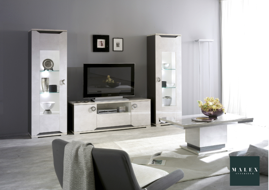 Découvrez notre séjour mistral, composé d’un meuble TV, de deux vitrines une porte, d’une vitrine deux portes, d’une table basse, d’un buffet avec miroir et d’une table à manger.