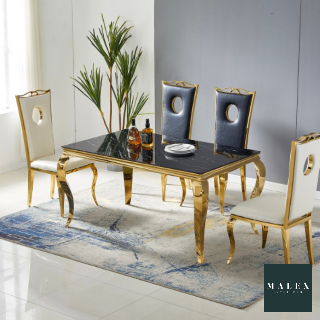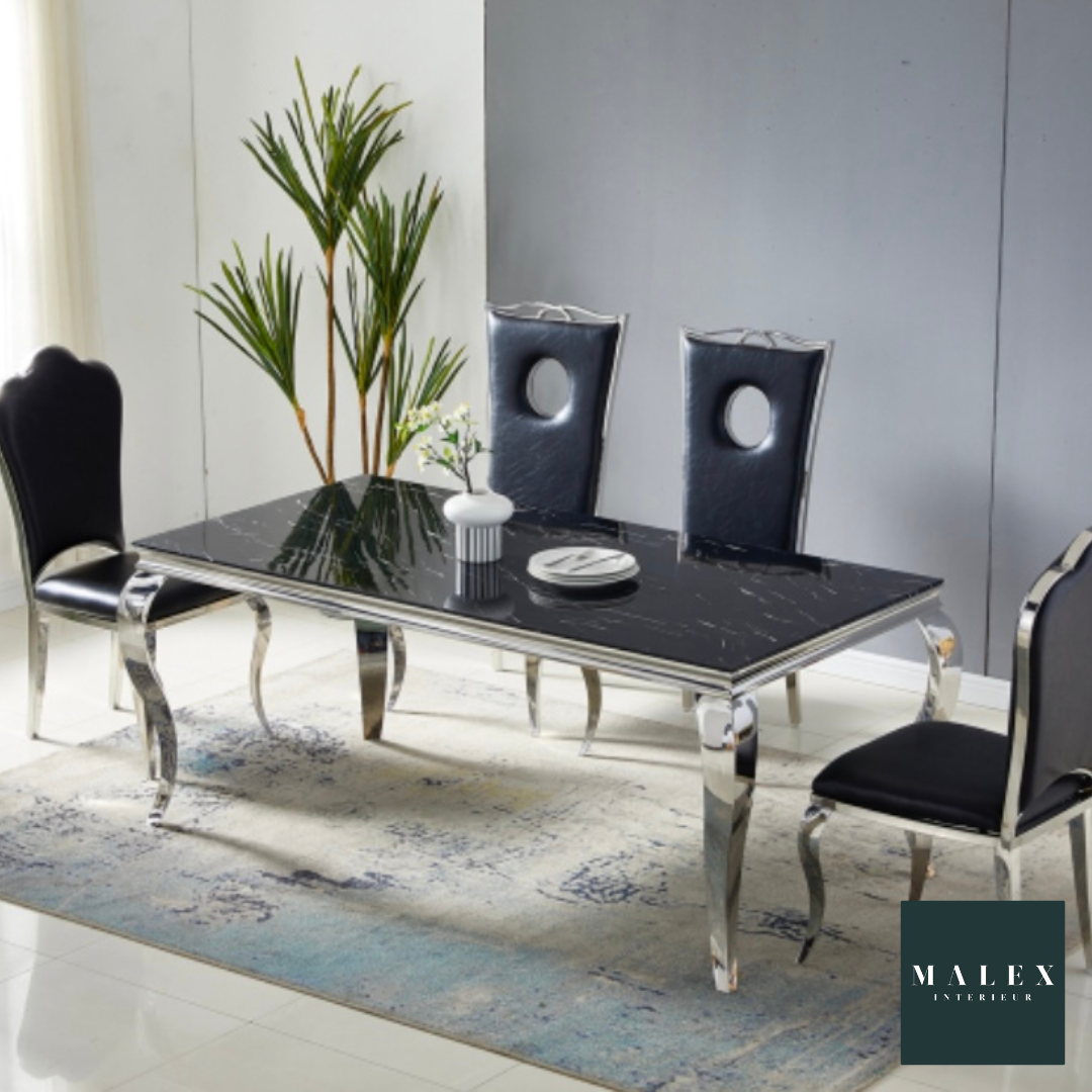 Élégante et fonctionnelle, cette table à manger allie design moderne et matériaux de qualité pour offrir une expérience conviviale et chaleureuse.