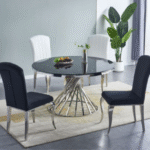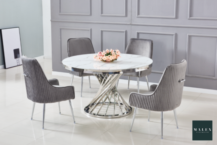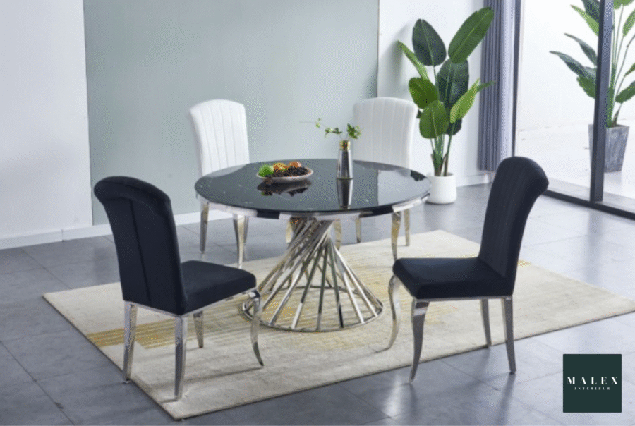 Élégante et fonctionnelle, cette table à manger allie design moderne et matériaux de qualité pour offrir une expérience conviviale et chaleureuse.
